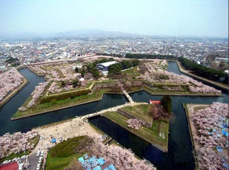 Goryokaku Tower could be overlooked on historical monuments Goryoukaku. Late April to mid-May each year, the the Goryokaku within about 1600 cherry blossoms will bloom. To appreciate the the Goryokaku star castle was cherry dyed pink beauty, the go Goryoukaku tower's observation deck is the most suitable, but. Lookout distance to the ground 86m and 90m, overlooking Mount Hakodate and Tsugaru Strait.